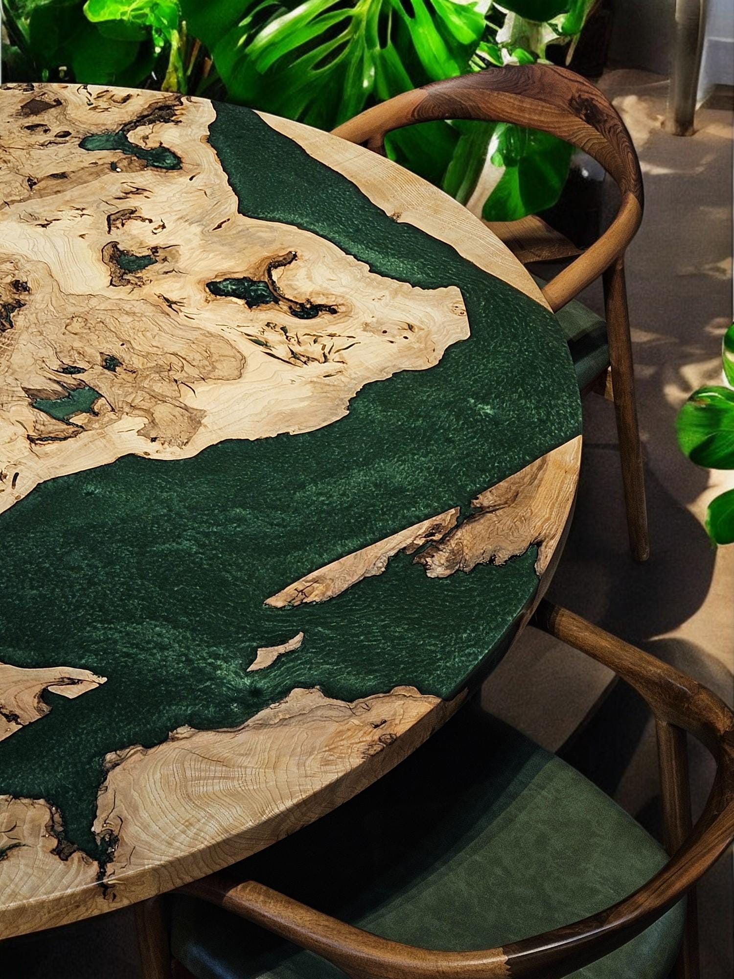Family gatherings are filled with special moments and cherished memories. π Our green epoxy resin tables combine natural wood with vibrant green epoxy, adding elegance and serenity to your dining room or kitchen. π³π These handcrafted tables create a warm and intimate atmosphere, making your meals with loved ones even more enjoyable.