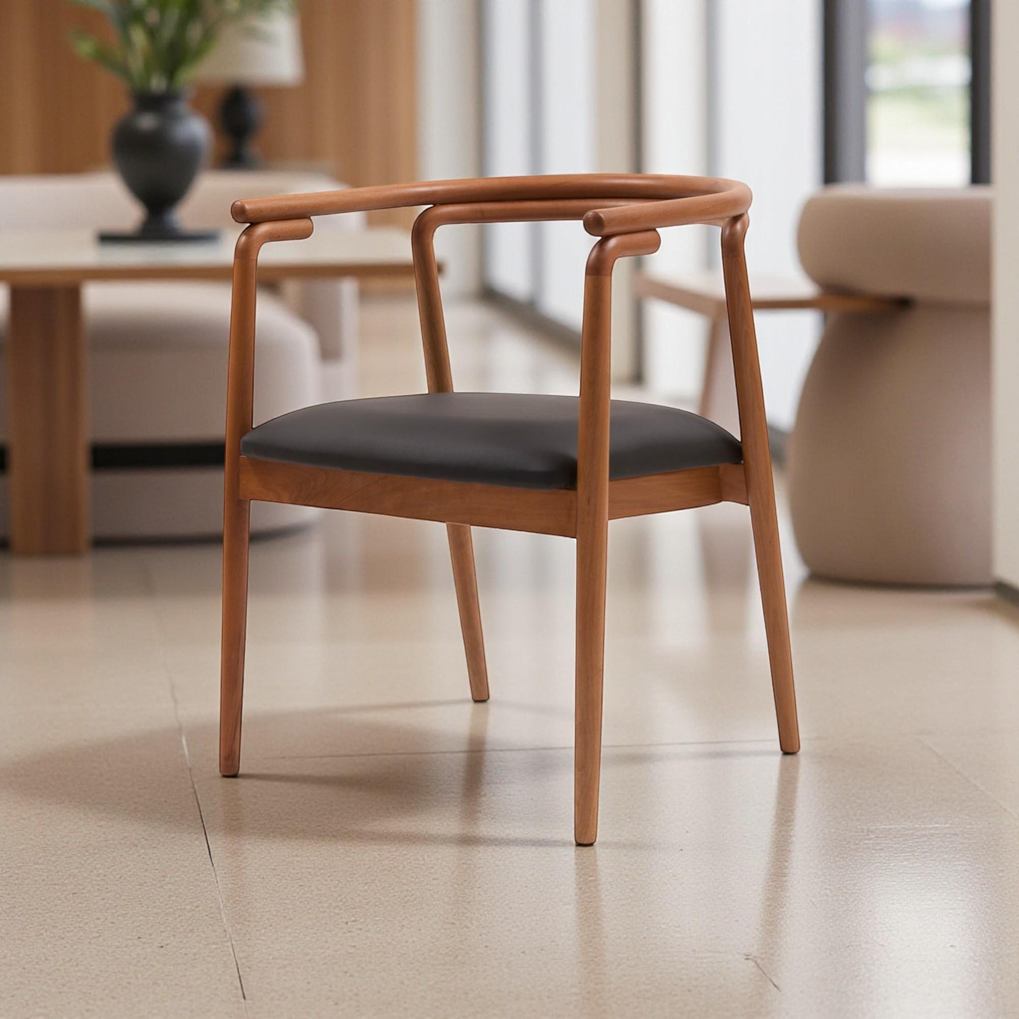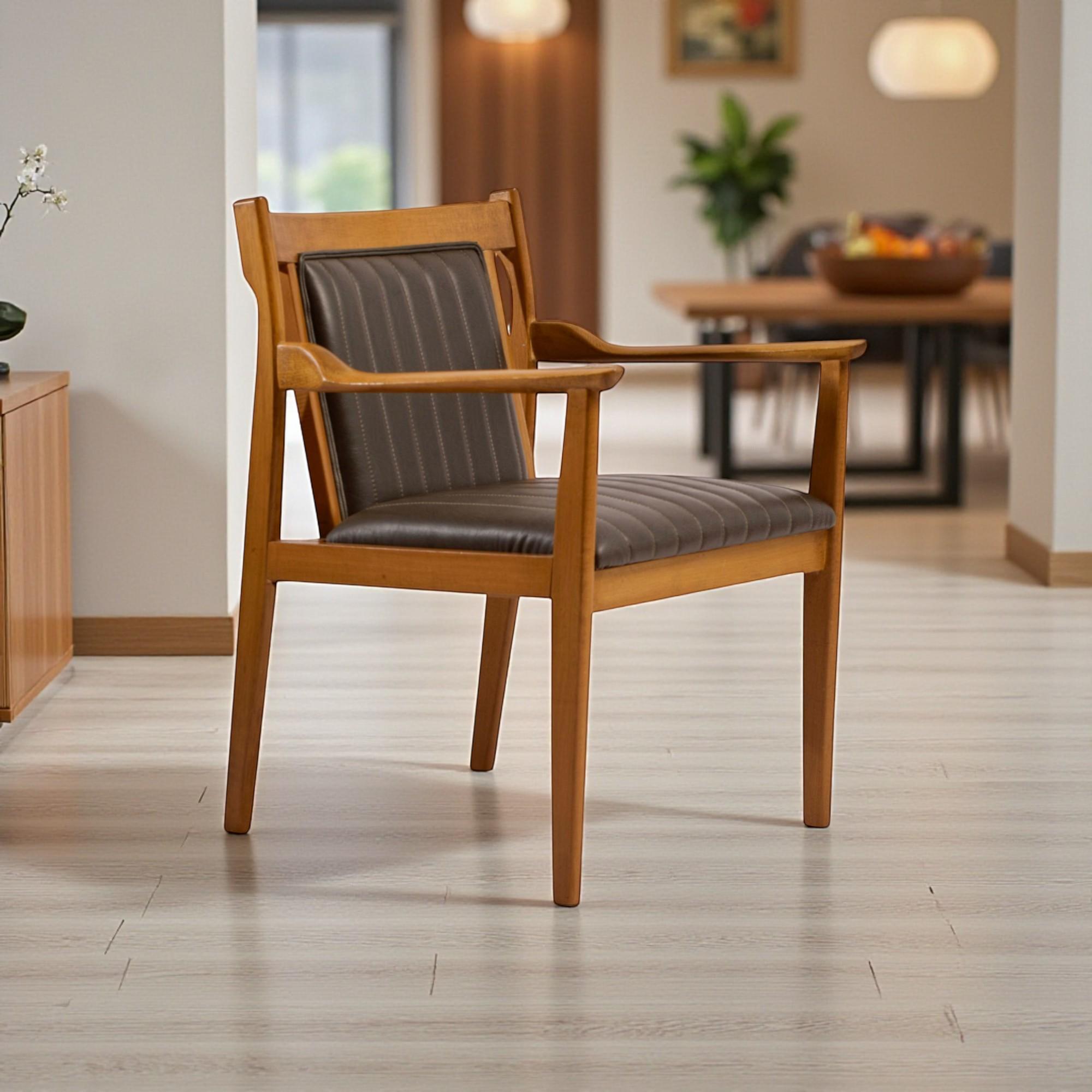 Handcrafted Solid Wood Dining Chair with Wooden Arms - Sustainable Seating
