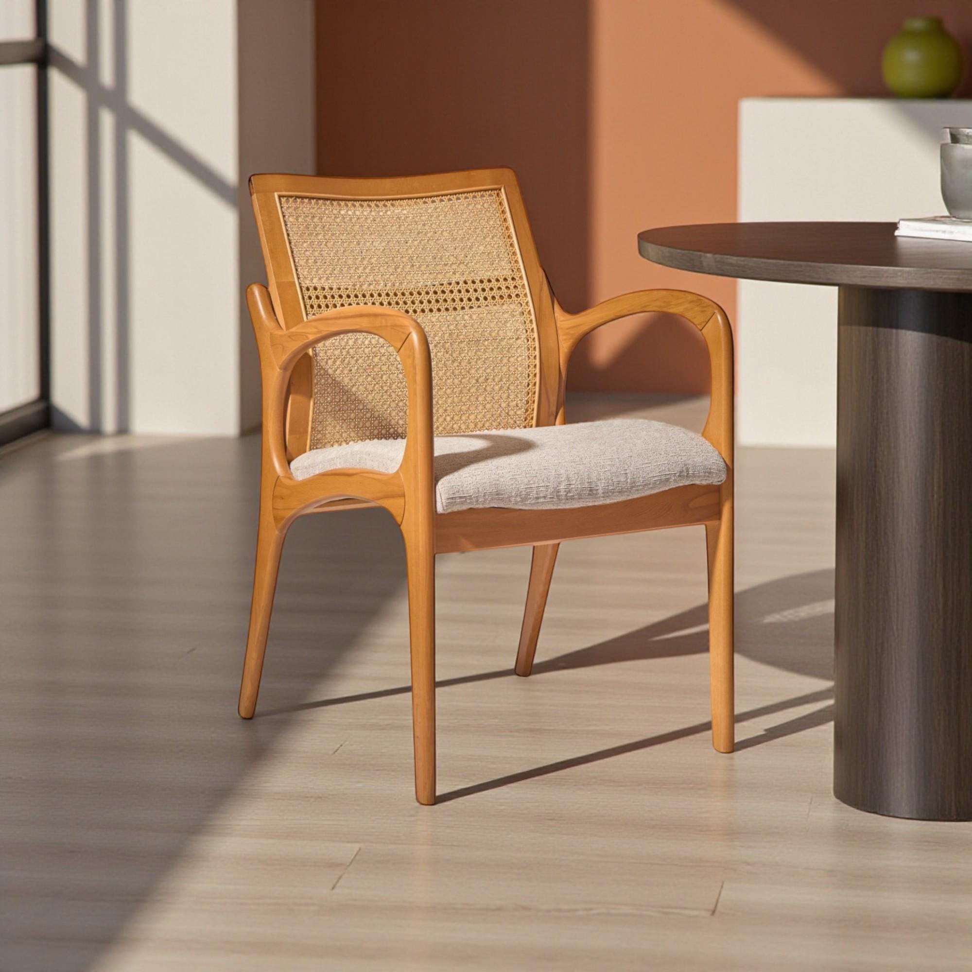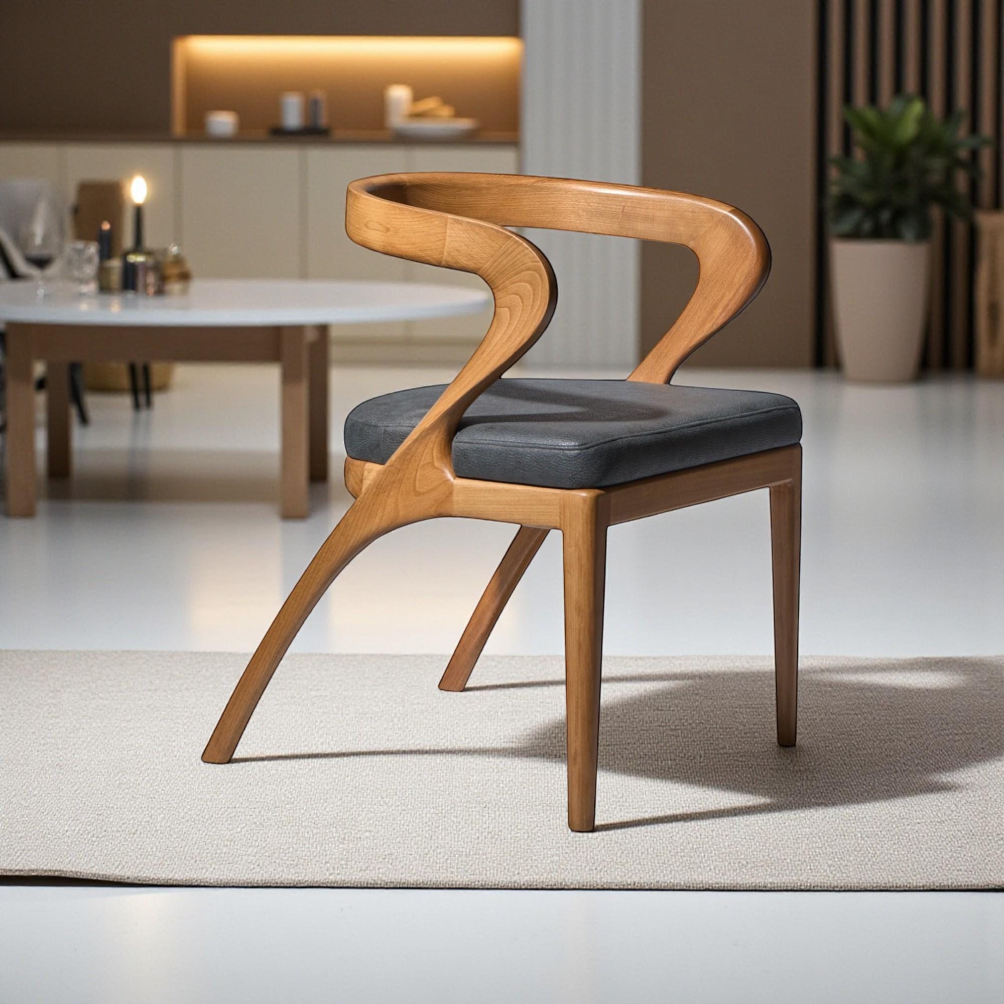 Handcrafted Walnut Dining Chair with Armrests: Modern Solid Wood Seating