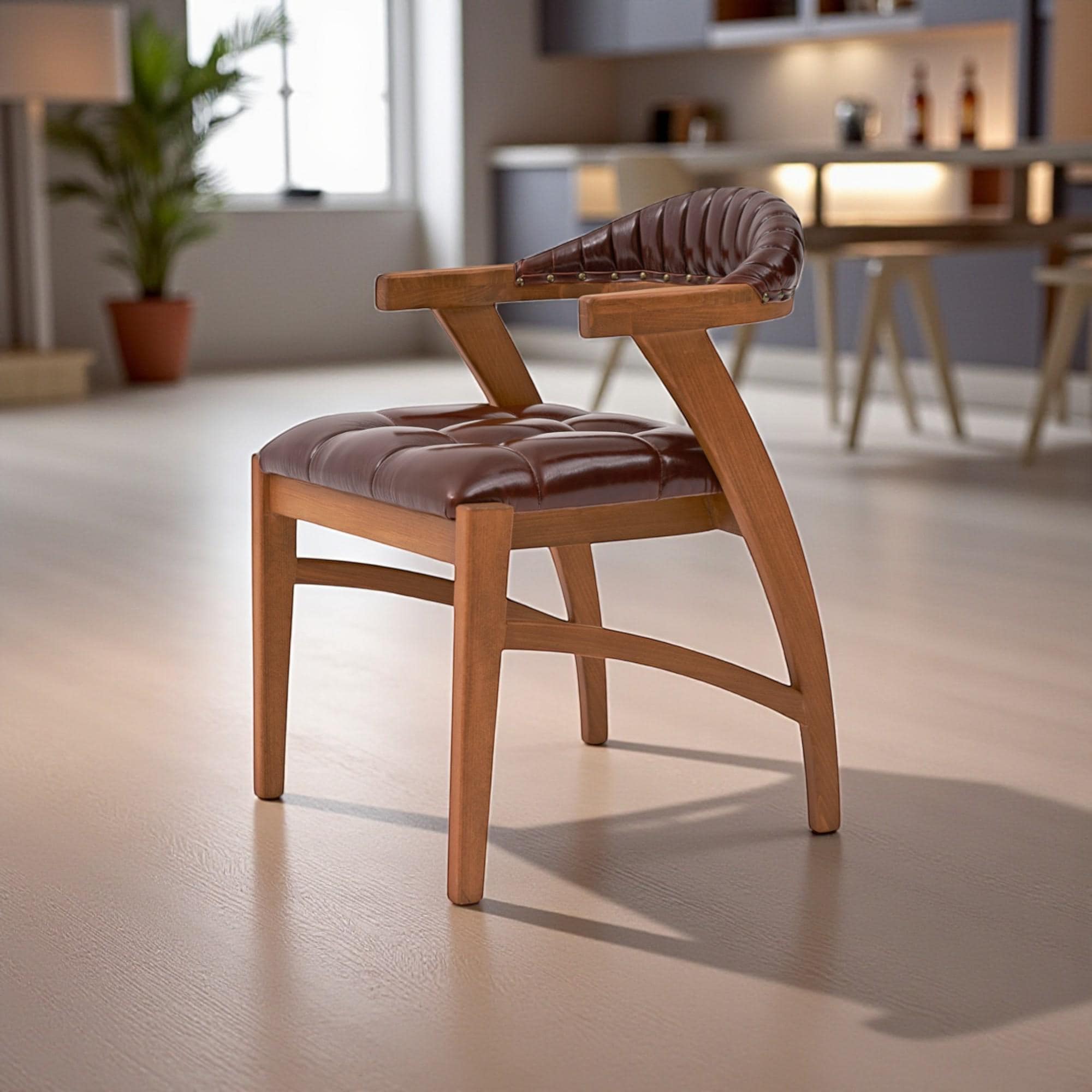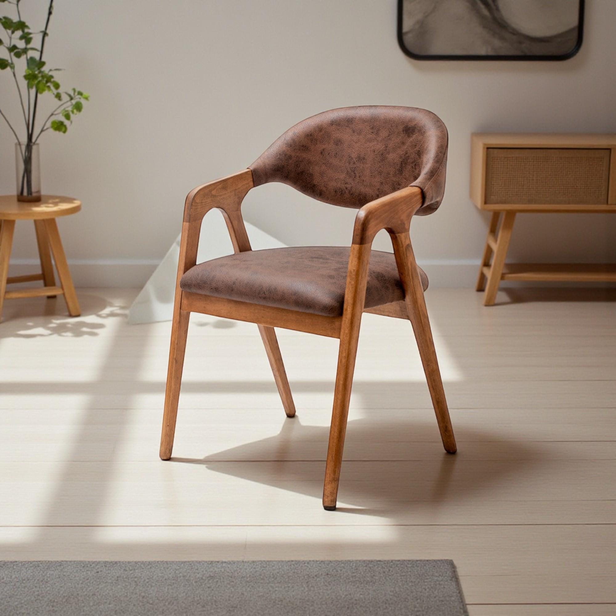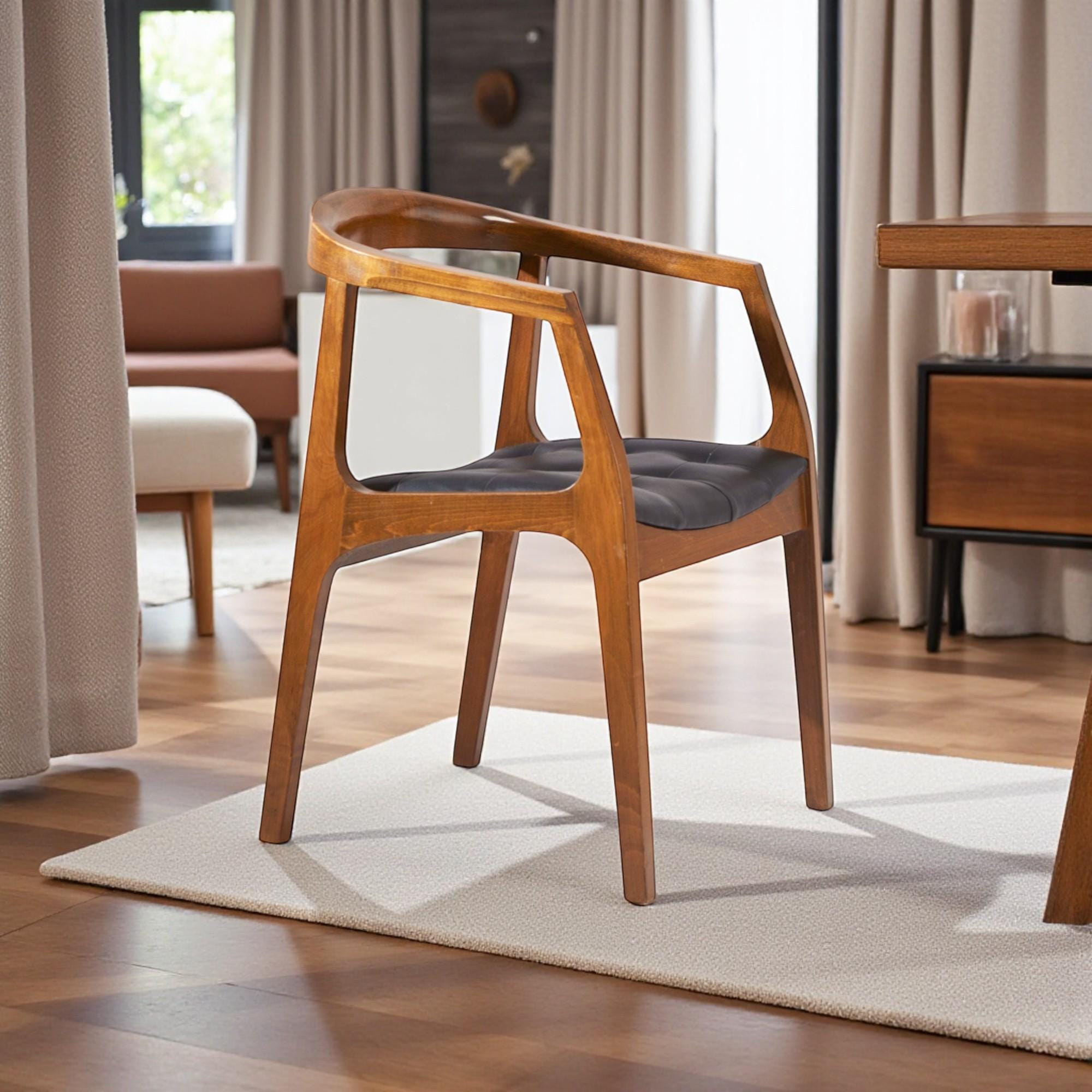 Handcrafted Walnut Dining Chair with Arms - Solid Wood Kitchen Seating