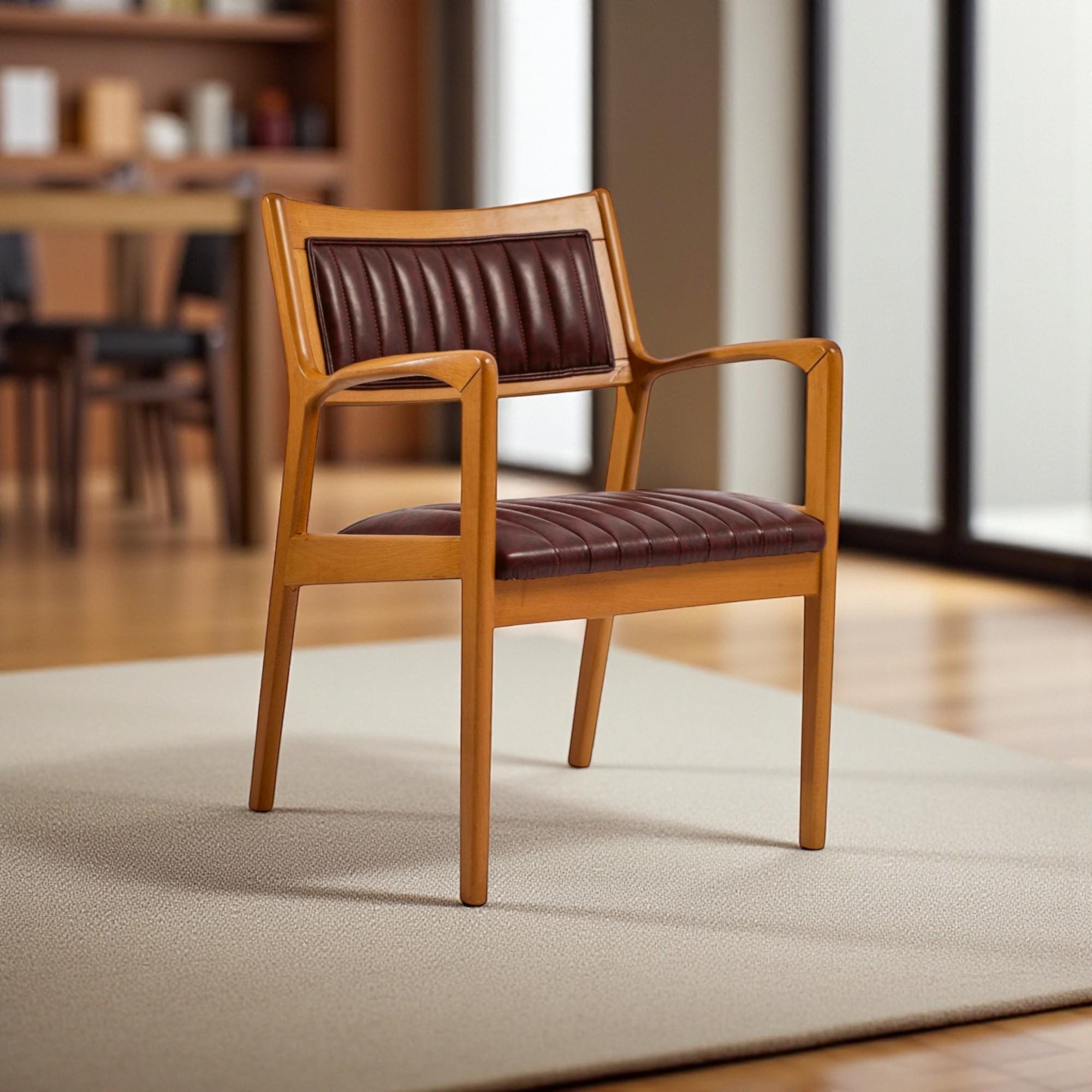 Handcrafted Wooden Dining Chair with Arms: Modern Kitchen & Living Room Seating