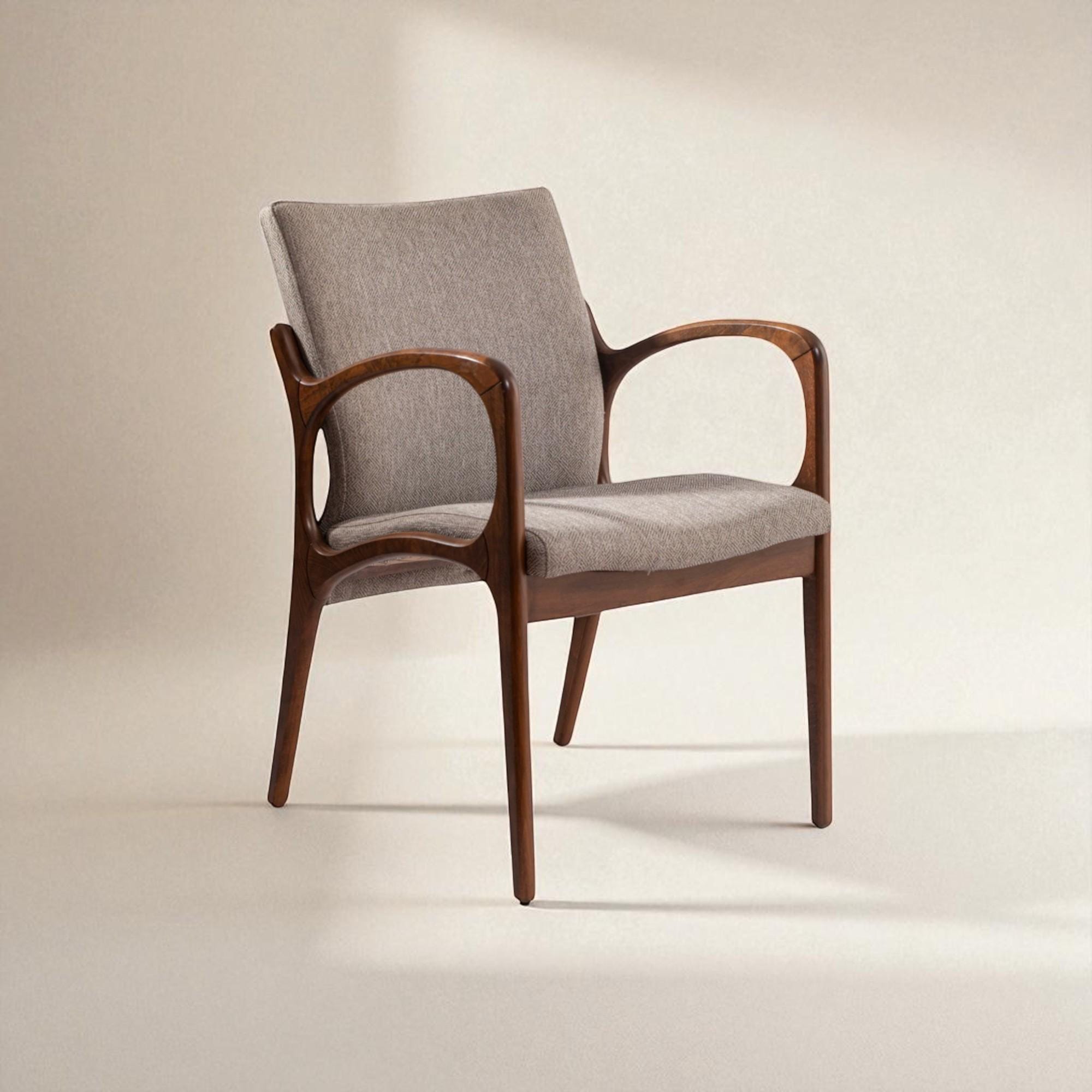 Handcrafted Wooden Dining Chair with Arms: Modern Solid Wood Armchair