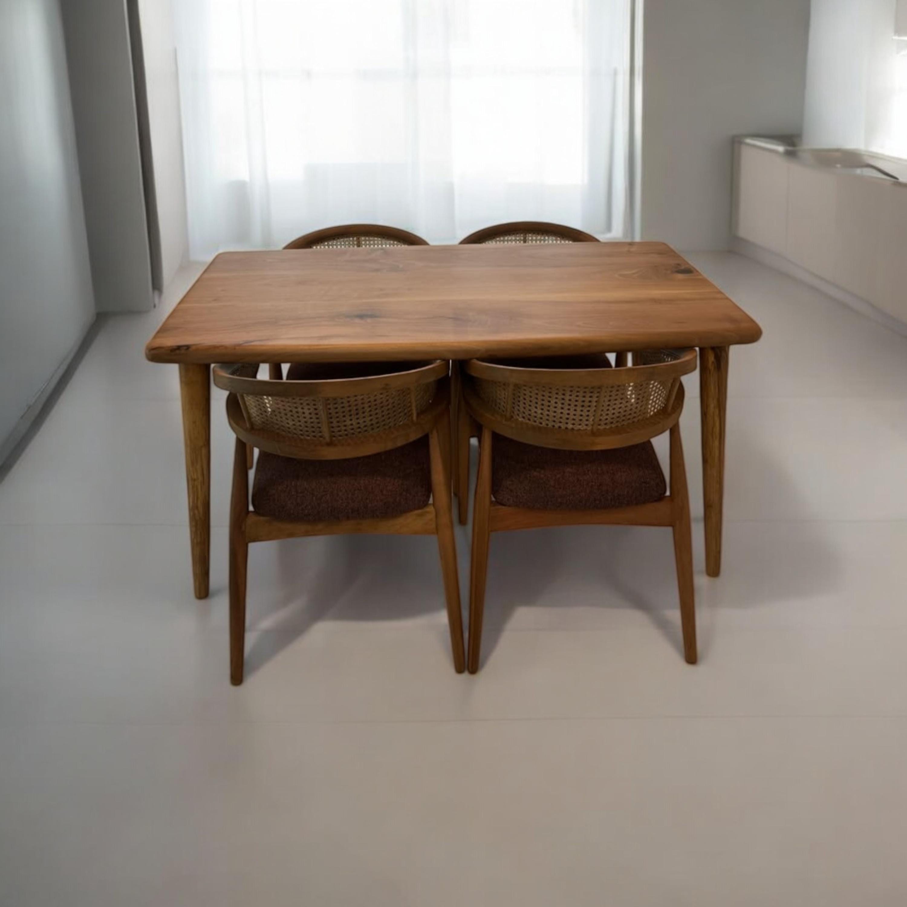 Made from walnut trees that are 100–150 years old. Each table has its own unique grain and character.