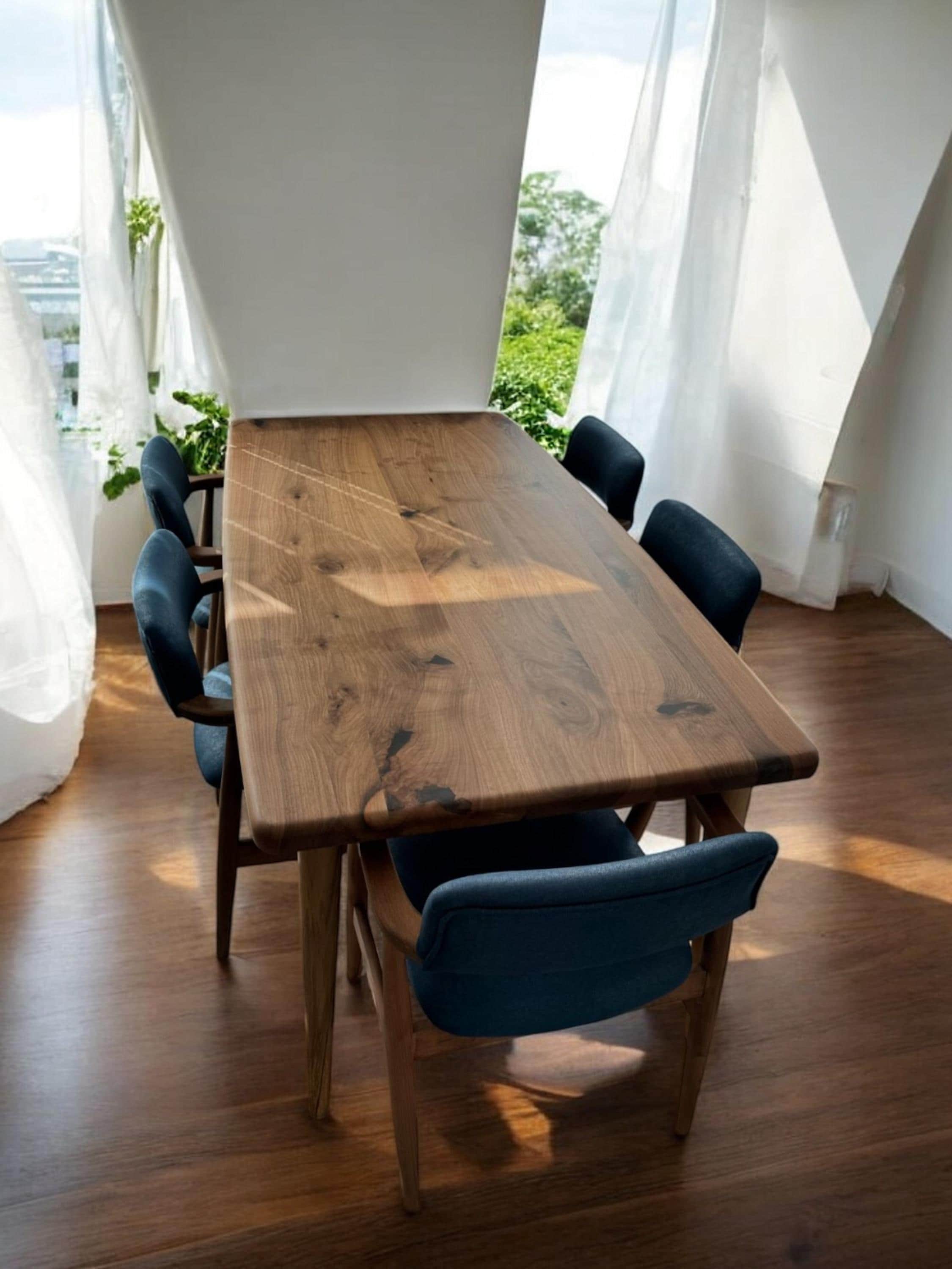 Made from walnut trees that are 100–150 years old. Each table has its own unique grain and character.