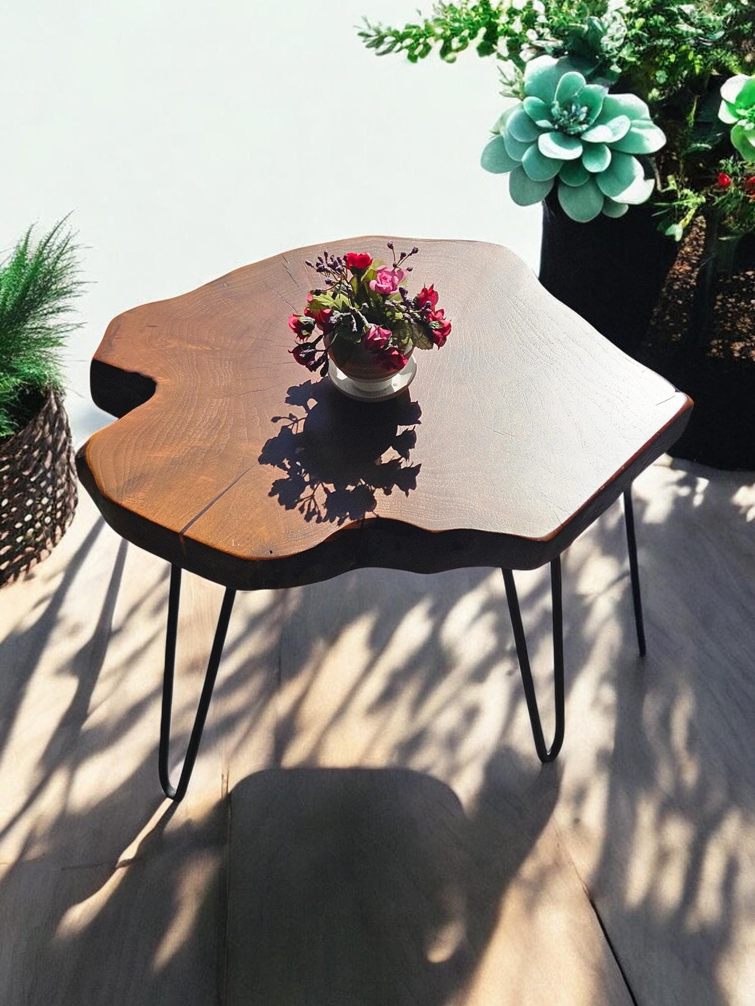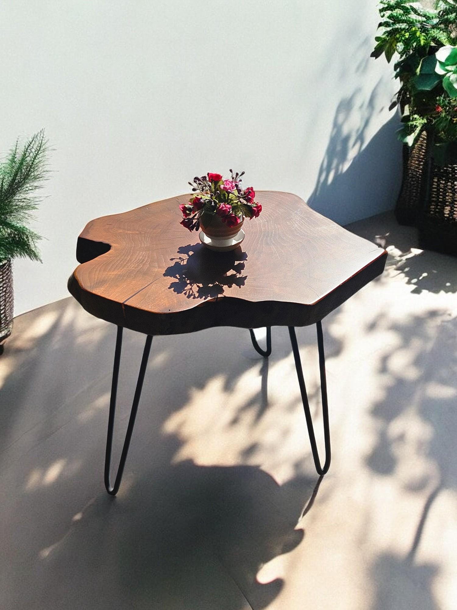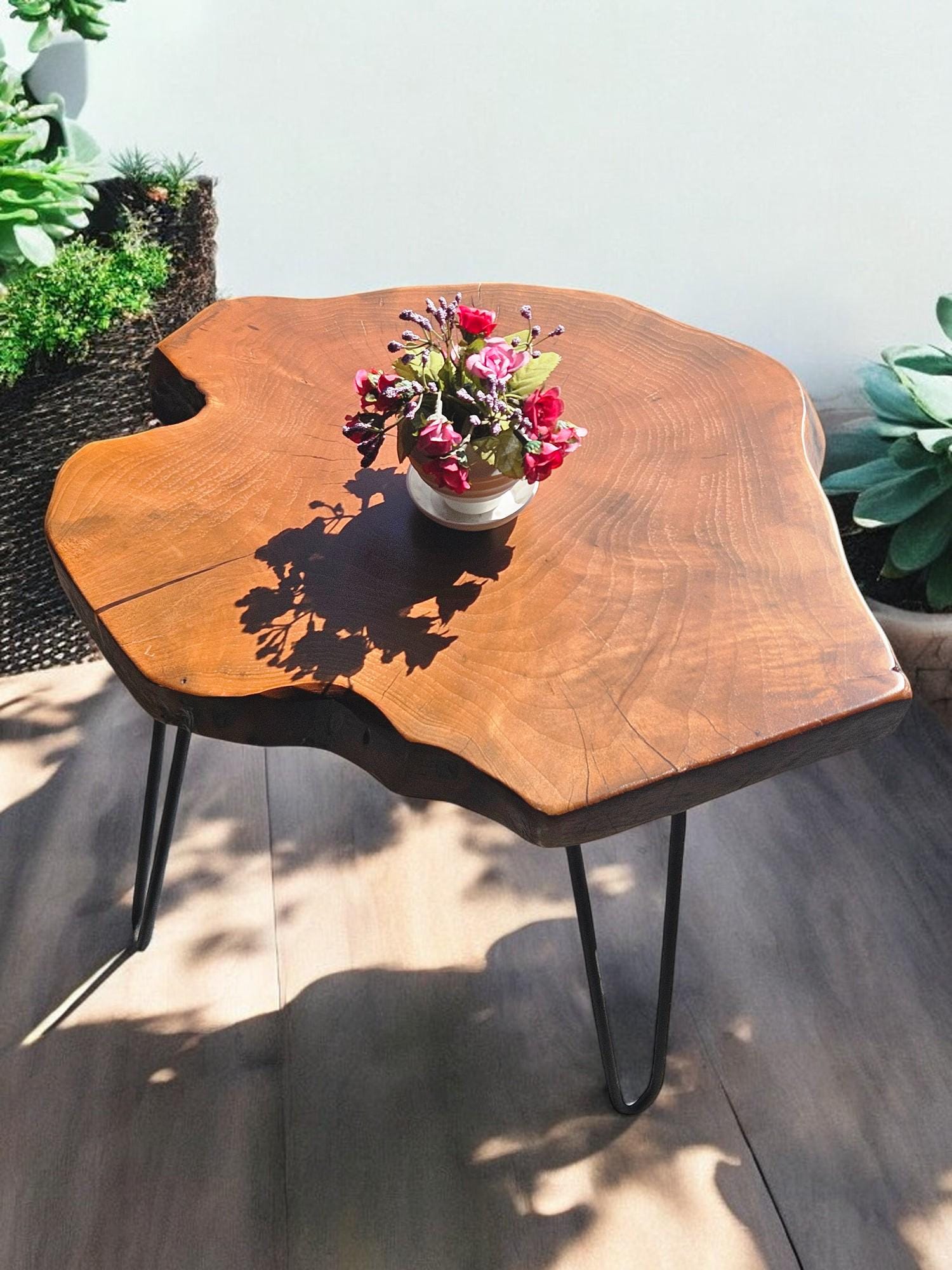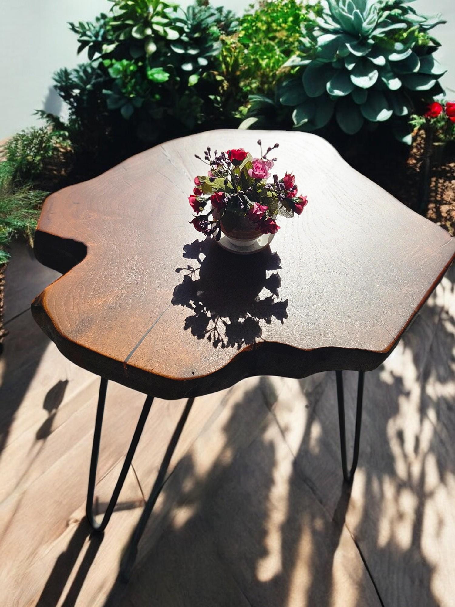 Rustic Round Walnut Table, Unique Coffee Table, Live Edge Walnut Coffee Table, Rustic Side Tables, Wood Side Table, Handcrafted Coffee...