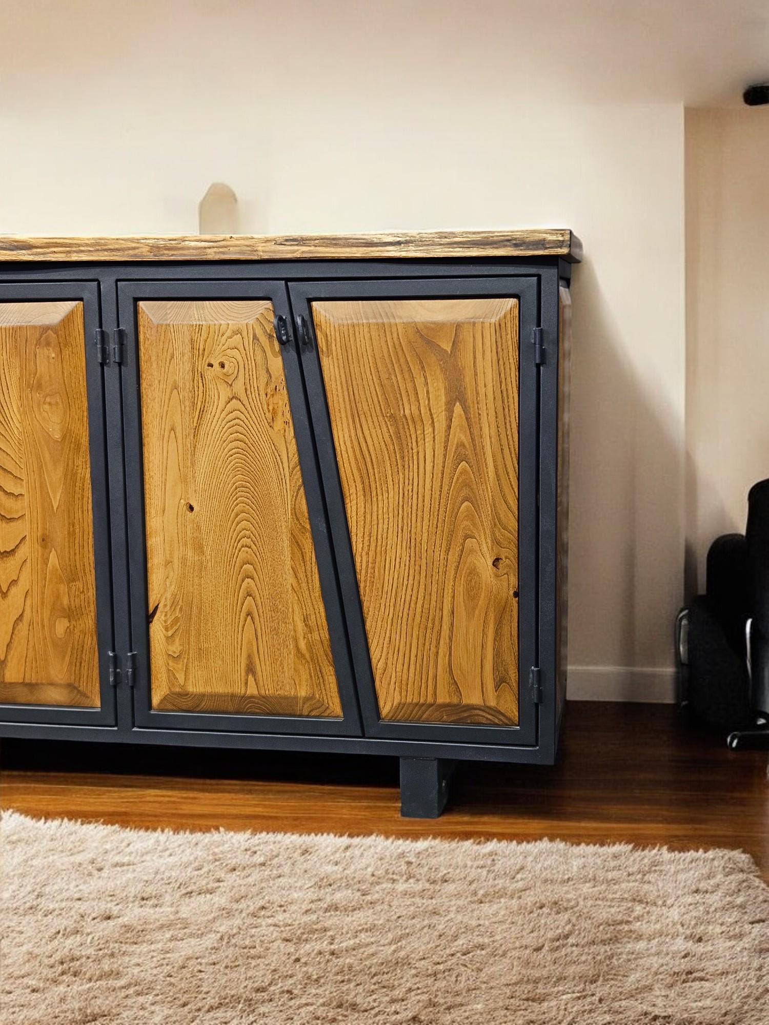 Live Edge Wooden Console, Modern Walnut Console, 4-door Walnut Console, Wooden Console, Metal and Wooden Console, Natural Walnut Console