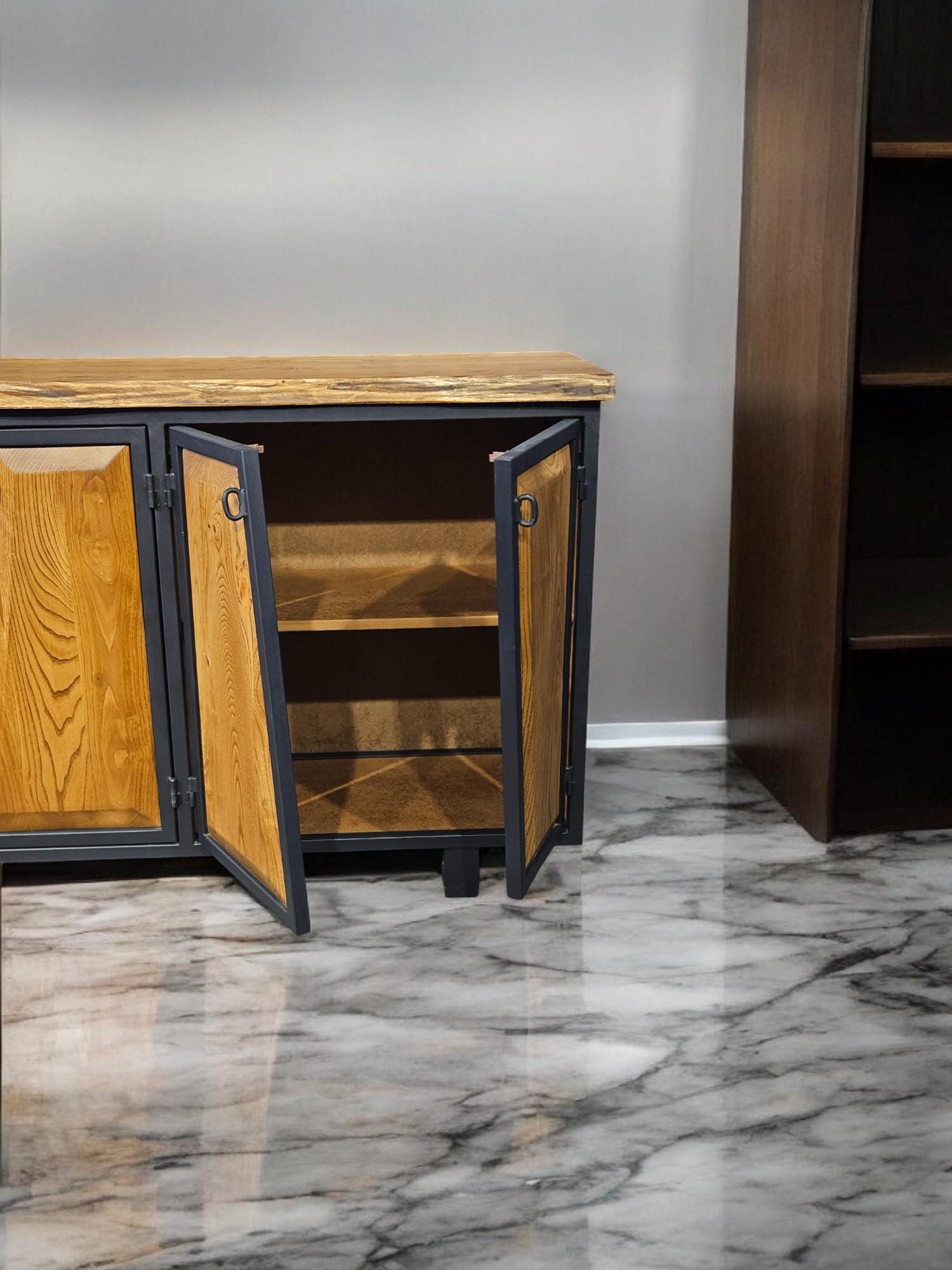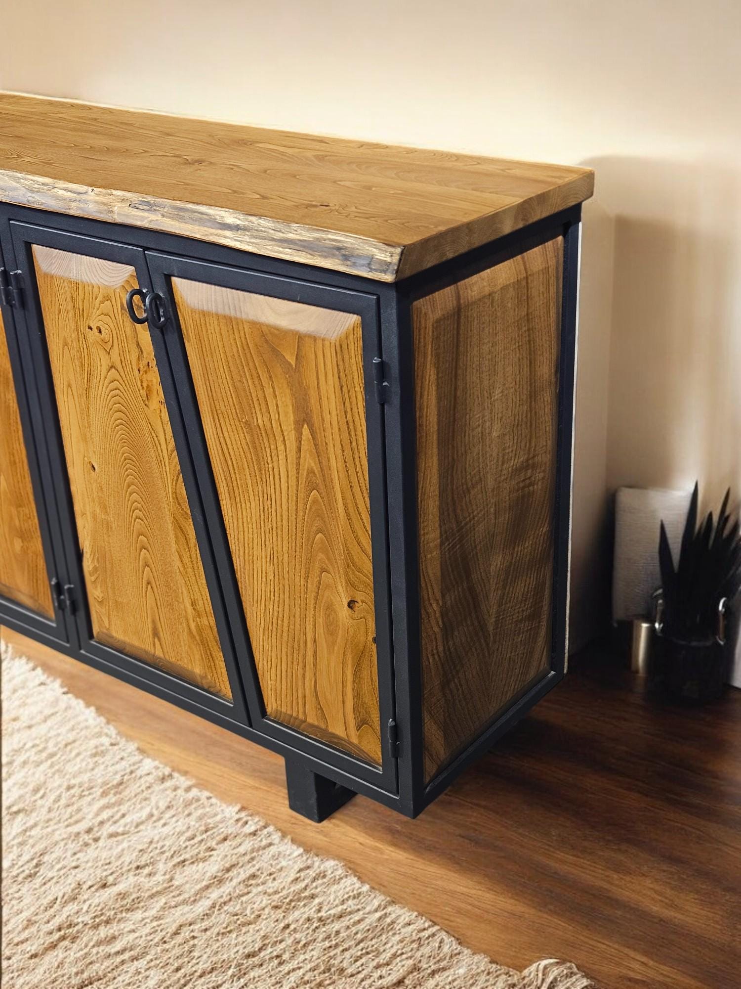 Imagine a piece of furniture that brings both style and function to your home, while telling the story of craftsmanship and natural beauty. Our Modern Walnut Console is more than just a storage solution; it's a statement piece that transforms any room. Crafted from natural walnut wood and built with a sturdy metal frame, this unique Console blends modern design with the timeless elegance of nature. Whether placed in your bedroom, living room, or hallway, this 4-door wooden Console will make every space feel special.