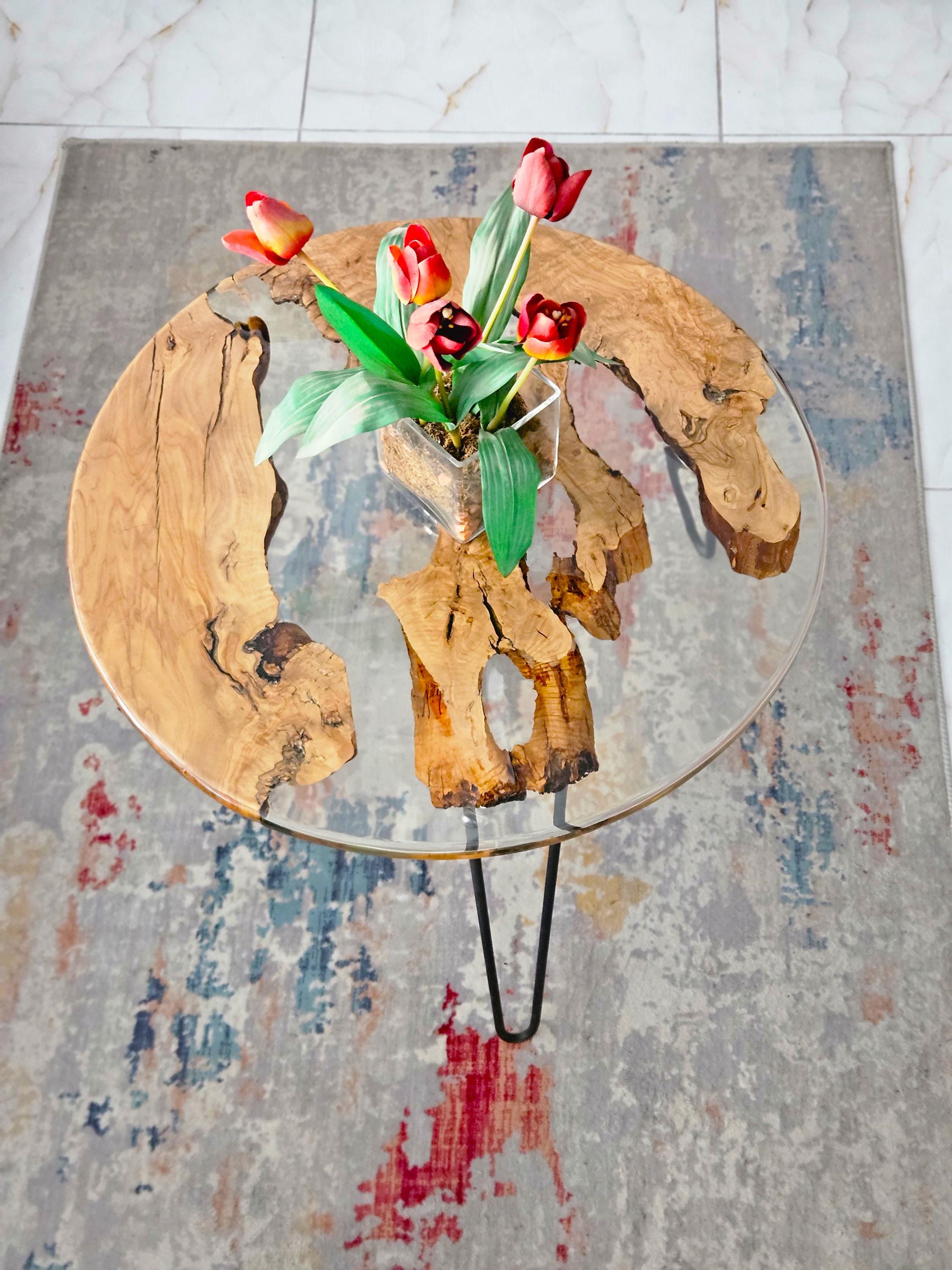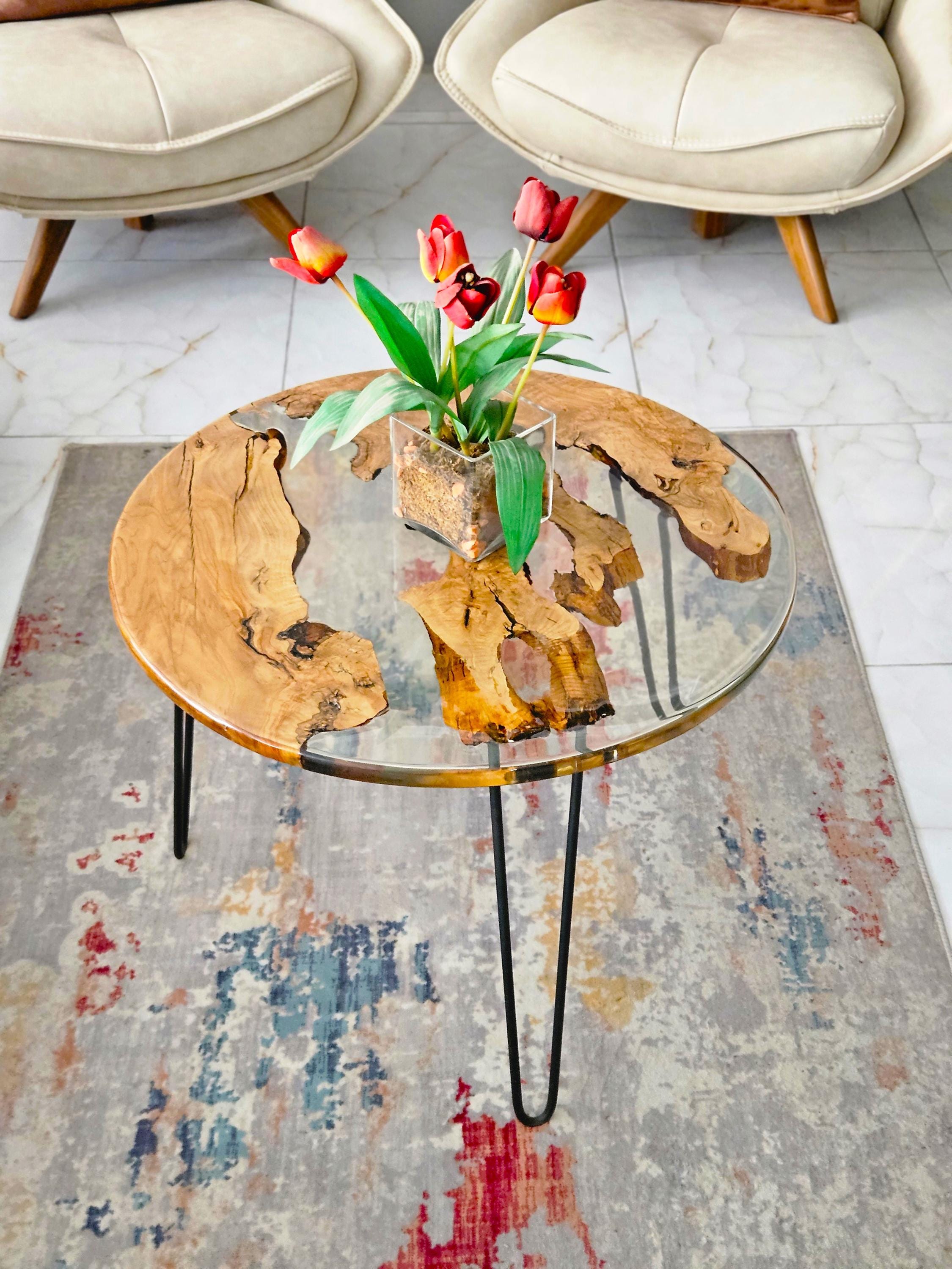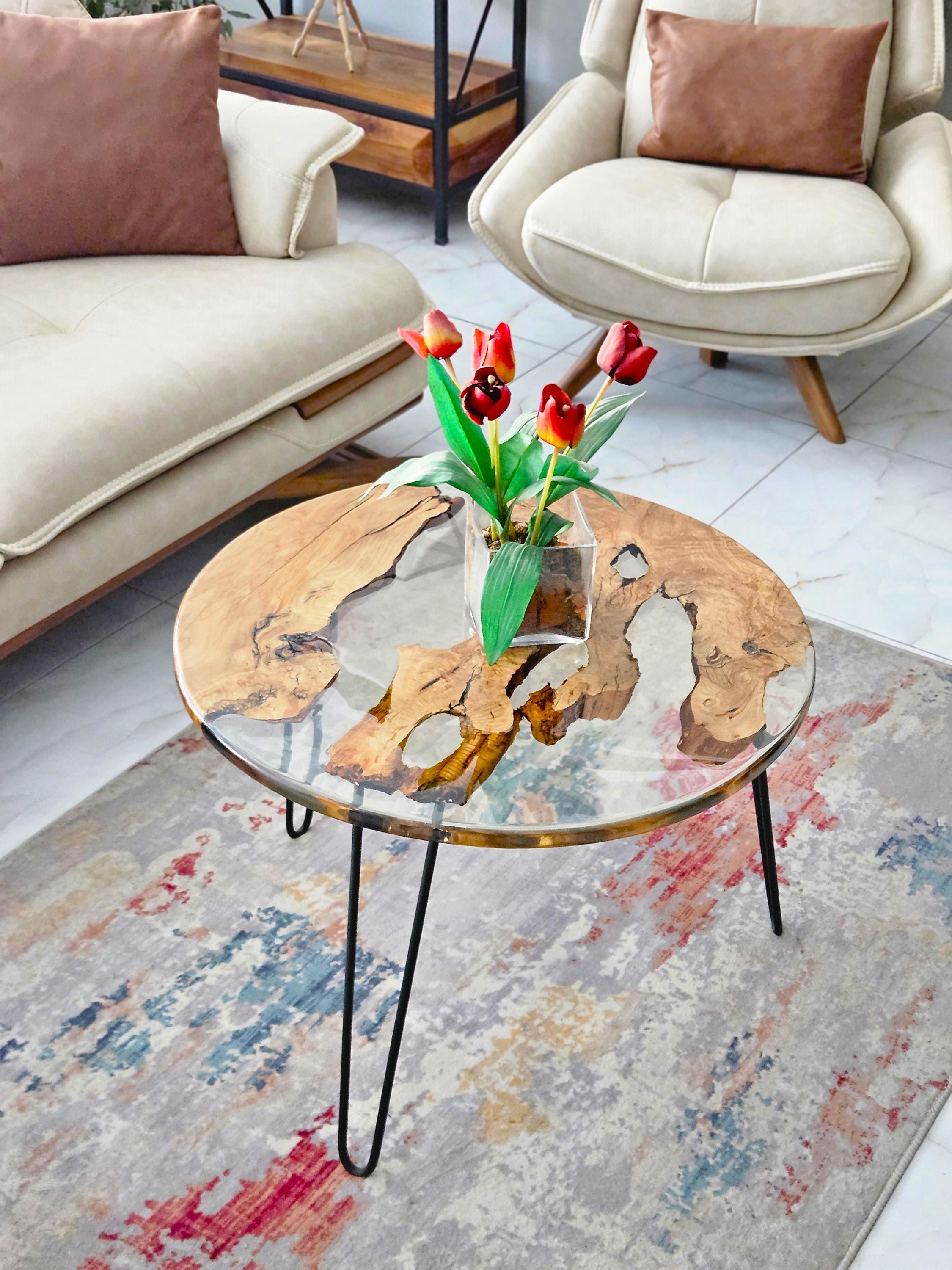 Personalized Epoxy Resin Coffee Table from Walnut Wood, Epoxy Coffee Table, Round Live Edge Resin Coffee Table, Round Epoxy Coffee Table