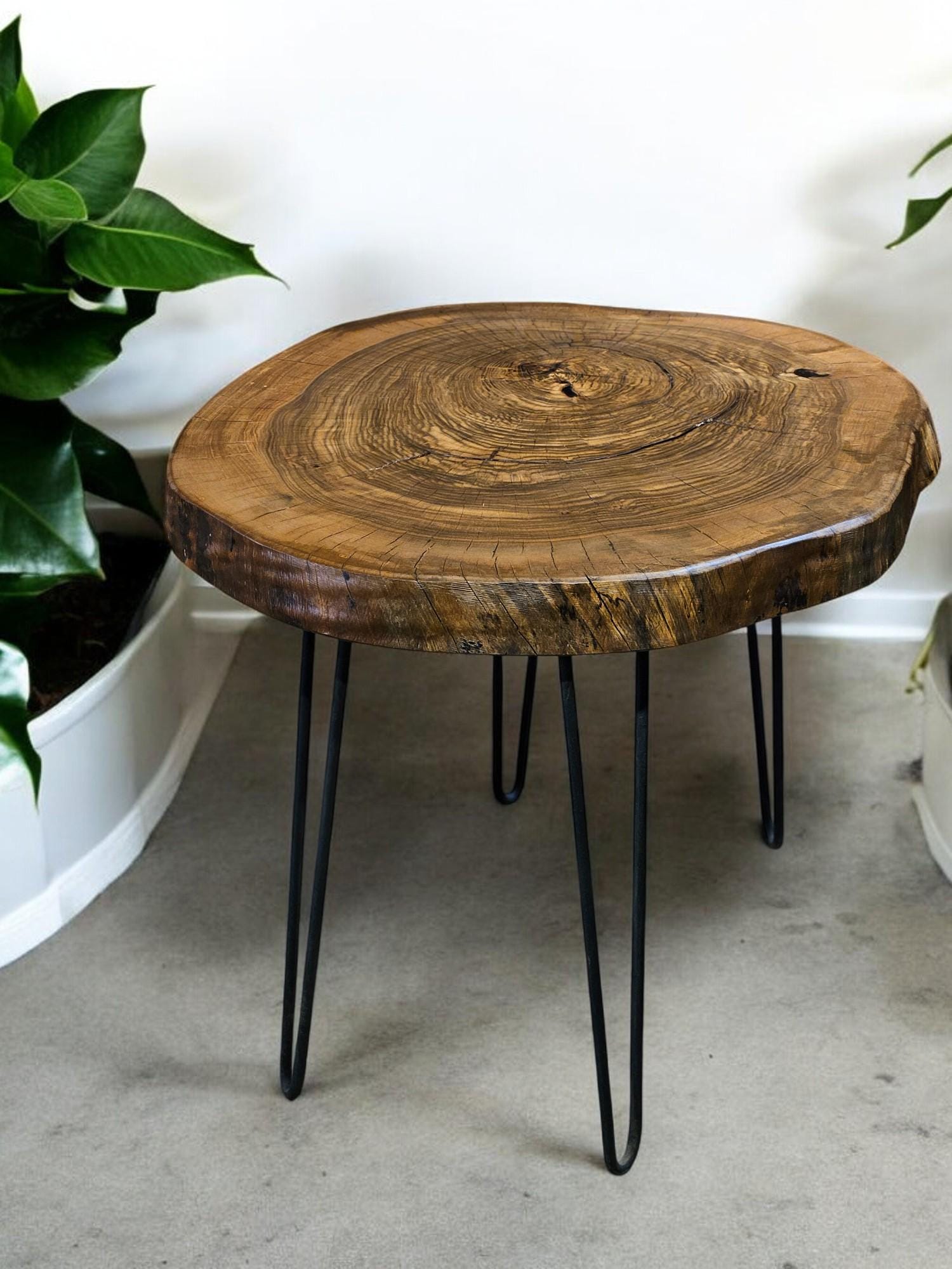 Rustic Round Walnut Table, Unique Coffee Table, Live Edge Walnut Coffee Table, Rustic Side Tables, Wood Side Table, Handcrafted Coffee...